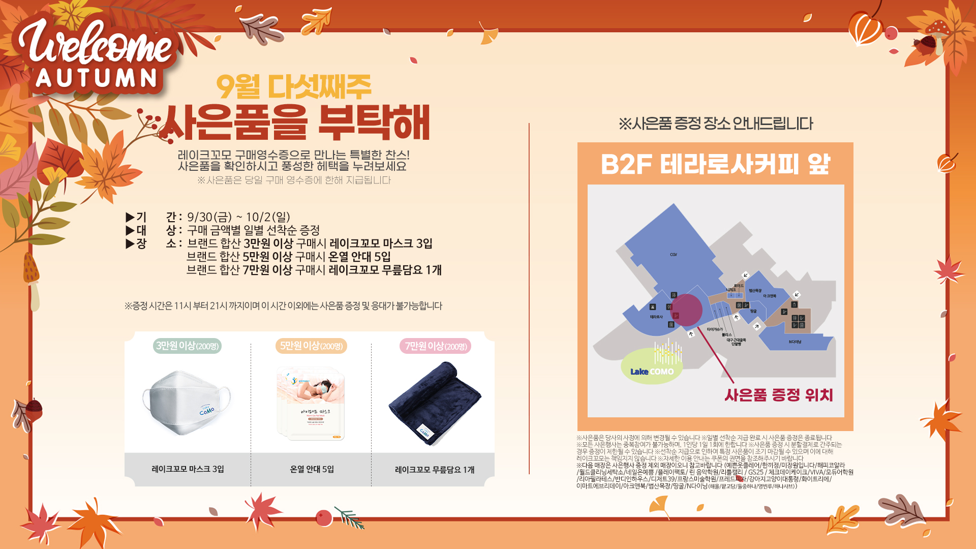 ▶사은품 | 브랜드합산 3만원 이상 구매 시 레이크꼬모 마스크 3입
