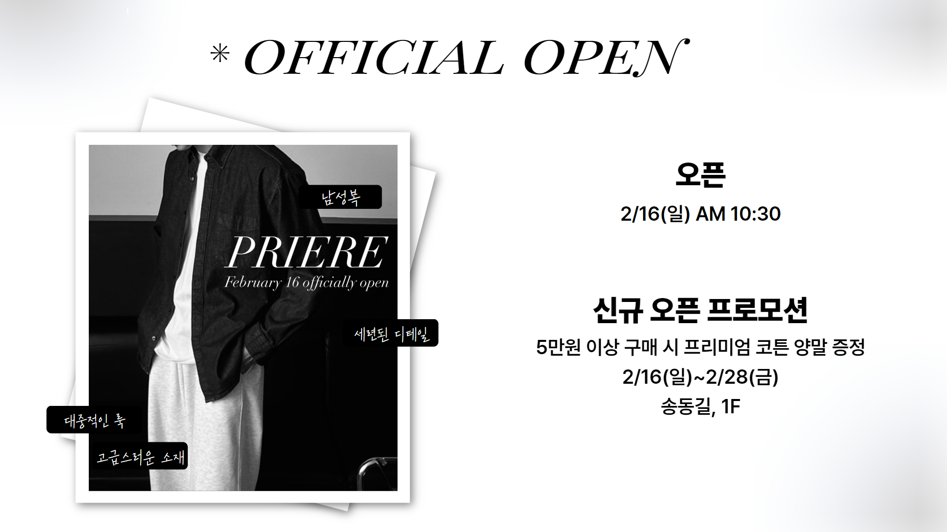 2/16(일) 남성복 매장 프리에 신규 오픈