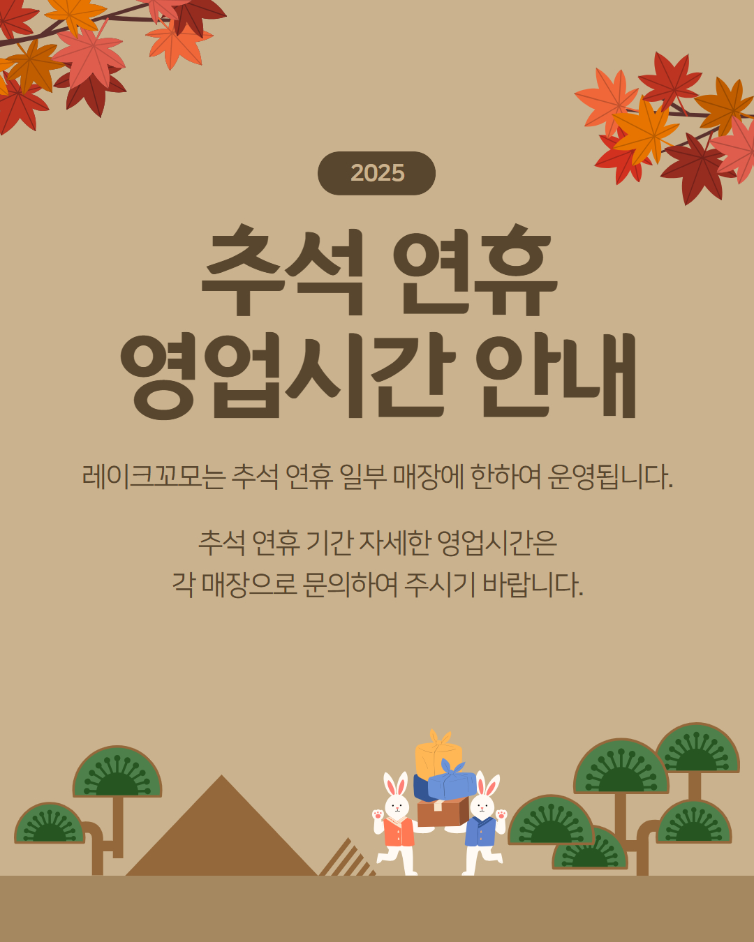 레이크꼬모는 추석 연휴 일부 매장에 한하여 운영됩니다.